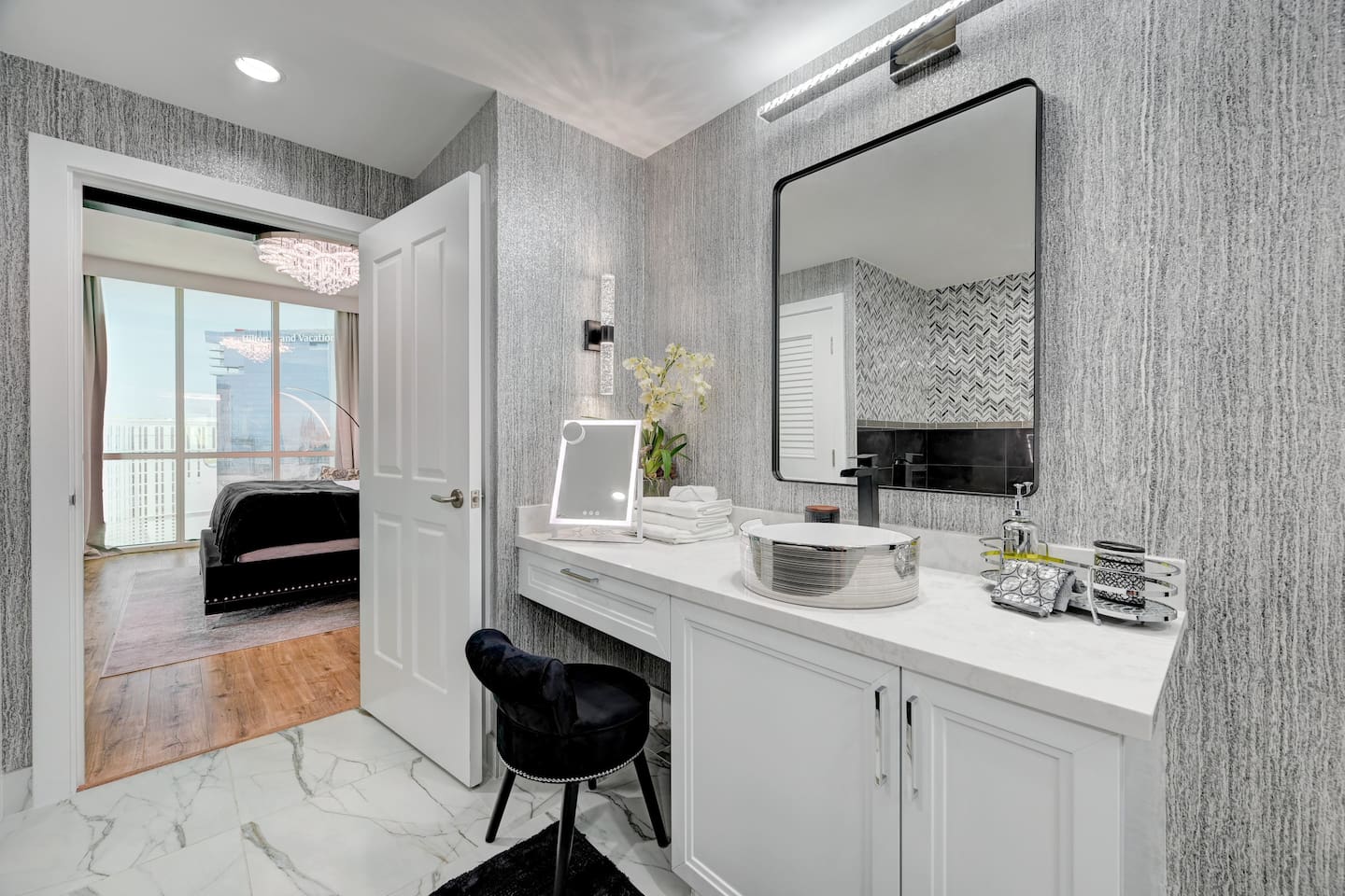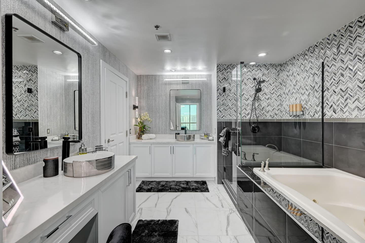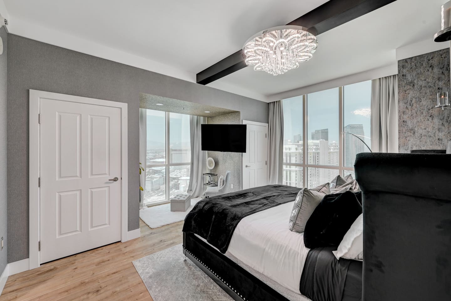 Welcome to our luxurious penthouse on the 30th floor of the Signature MGM, recently remodeled with $100,000 in upgrades. - This Suite is in Tower 2 ( Tower A/B/C = 1/2/3 ) * 2 Separate Condos Side by Side ( Adjoined by Double Doors ) One Side is a 1 Bedroom Condo - The Other Side is a Studio Condo Both Condos are Joined Together by Double Doors that can Close/Open/Lock This Allows for the Option to enjoy 3 Private Sleeping Areas Or Open.