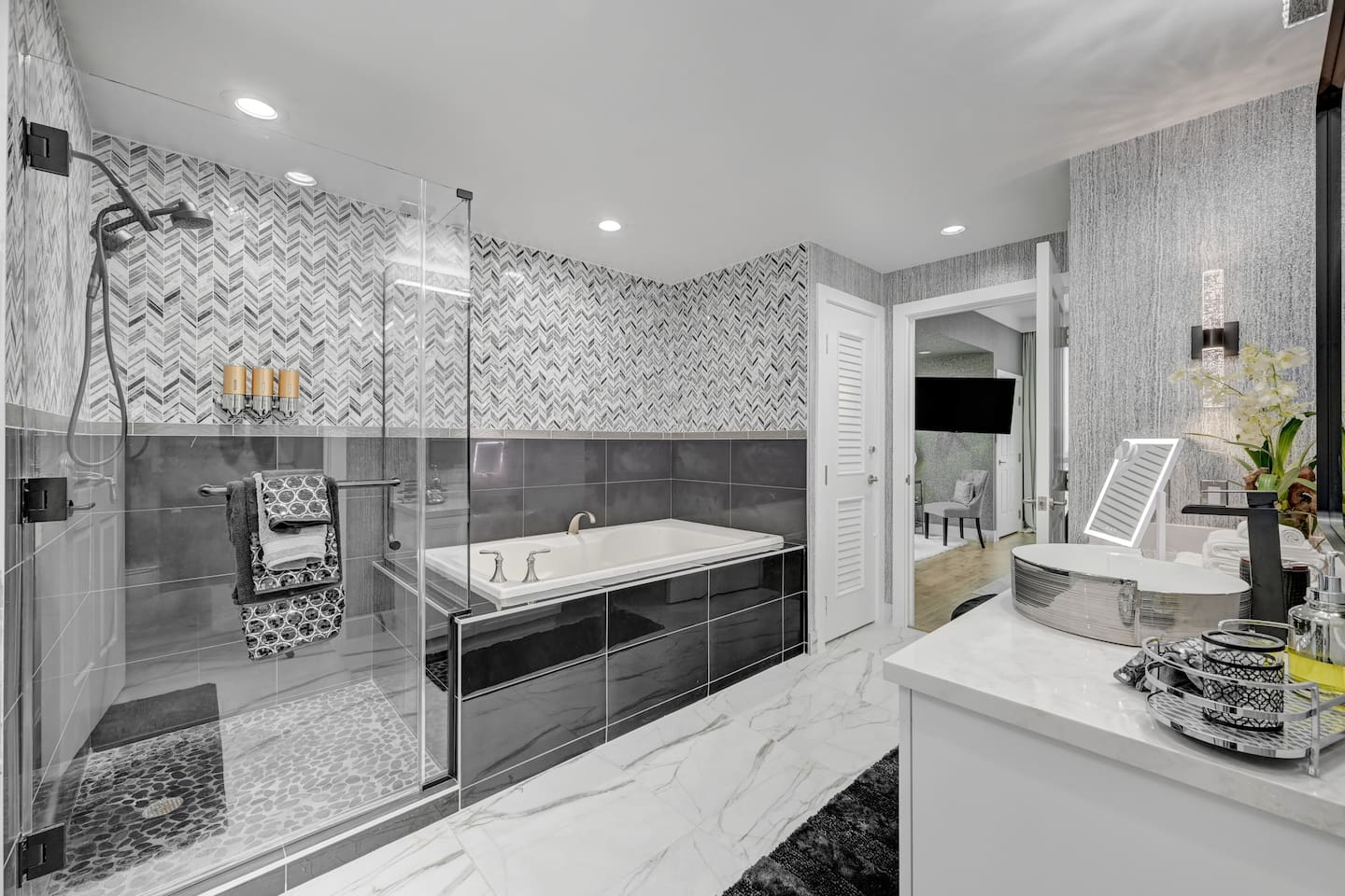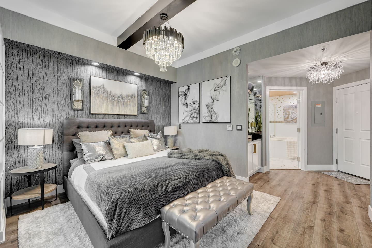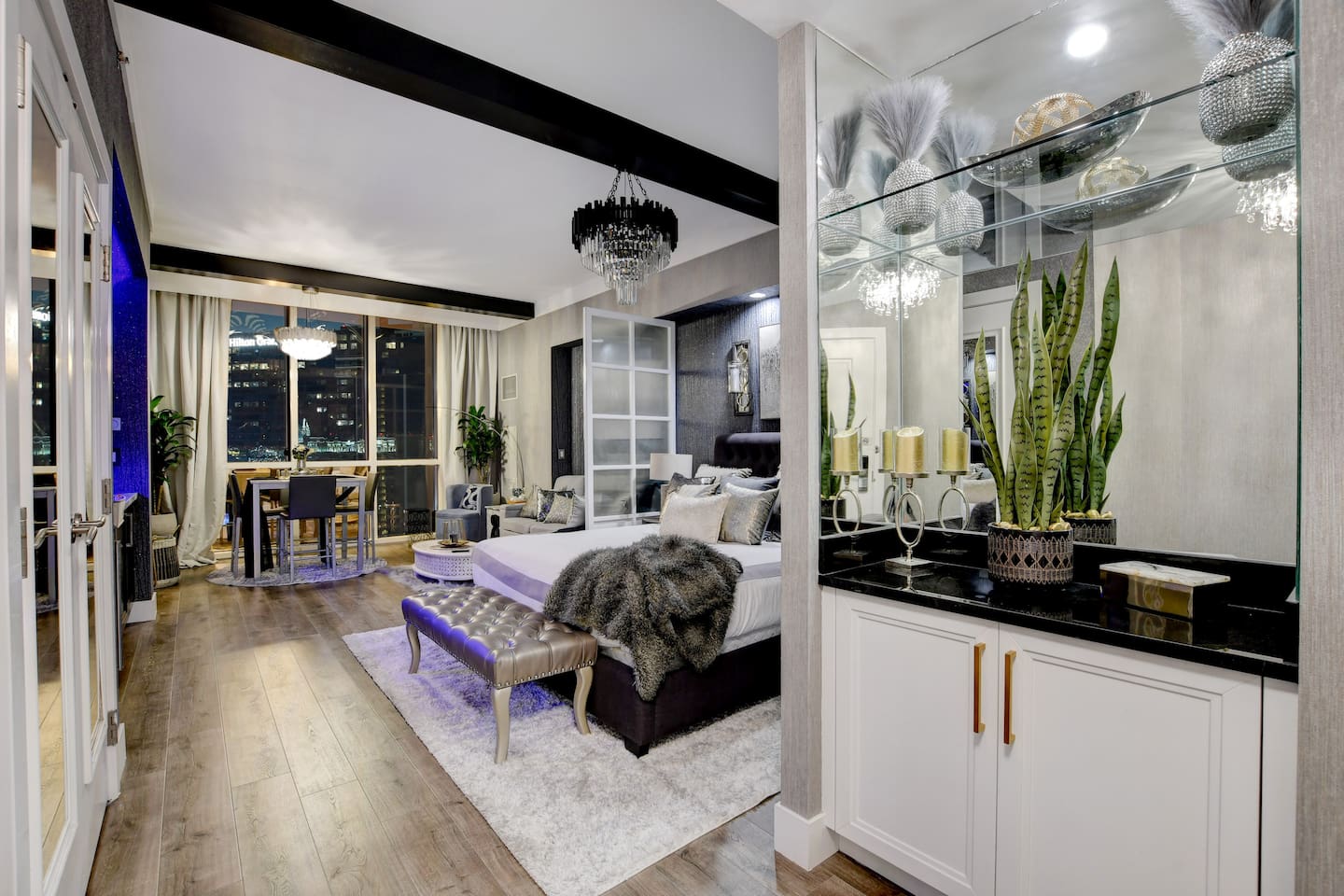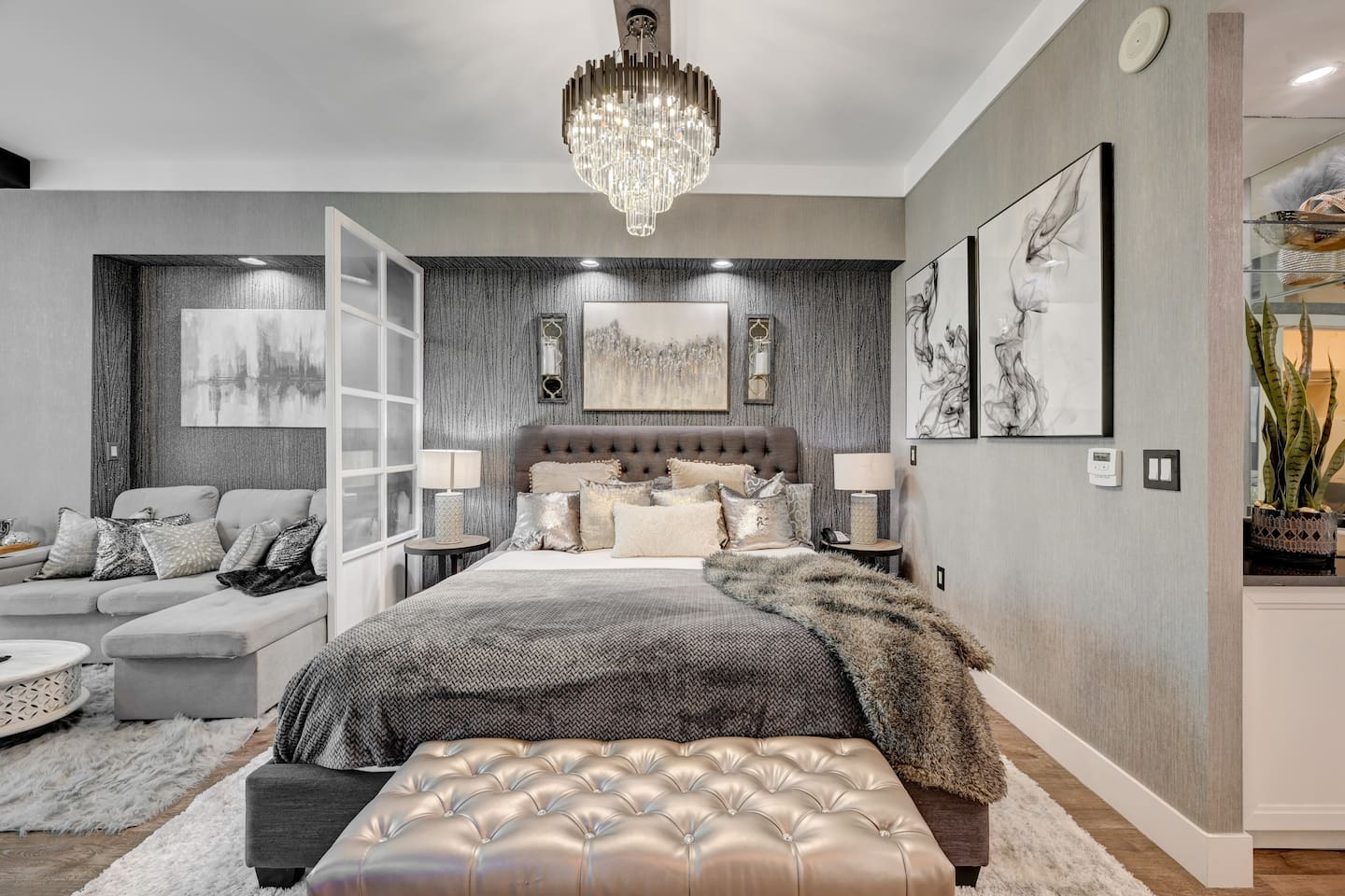 Welcome to our luxurious penthouse on the 30th floor of the Signature MGM, recently remodeled with $100,000 in upgrades. - This Suite is in Tower 2 ( Tower A/B/C = 1/2/3 ) * 2 Separate Condos Side by Side ( Adjoined by Double Doors ) One Side is a 1 Bedroom Condo - The Other Side is a Studio Condo Both Condos are Joined Together by Double Doors that can Close/Open/Lock This Allows for the Option to enjoy 3 Private Sleeping Areas Or Open.