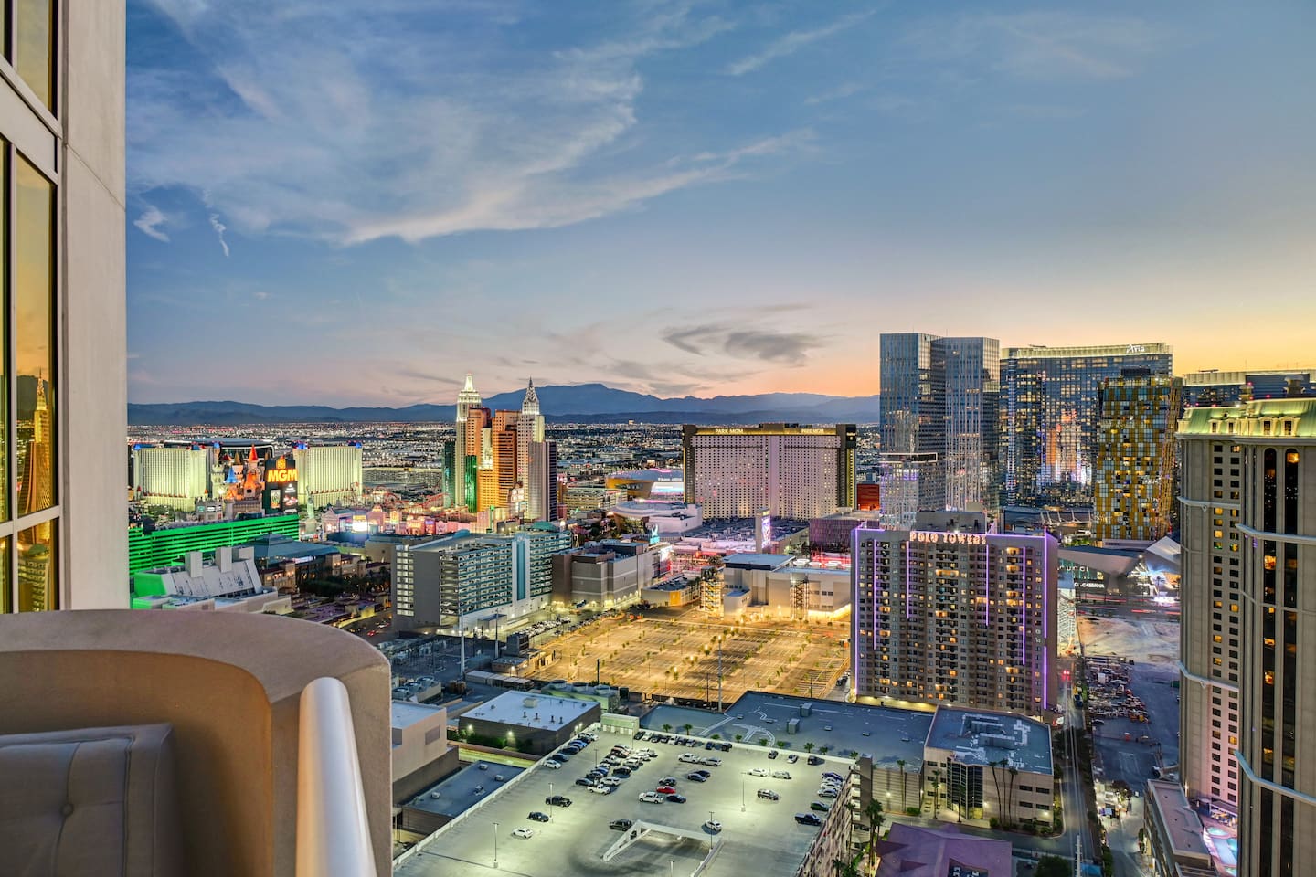 REMODELED * Free Access to ALL MGM Amenities ( Lazy River/Gym/4 Pools ) * Strip View Balcony * Jacuzzi Tubs * LED Lighting * 2 King Beds Total – 1 in Each Suite * 2 Pull-Out Queen Beds Total – 1 in Each Suite * 1 Fully Equipped Kitchen + Living Room * 1 Fully Equipped Kitchenette + Living Room * 3 Full Bathrooms * Free Valet Parking for 2 Vehicles NO RESORTS FEE