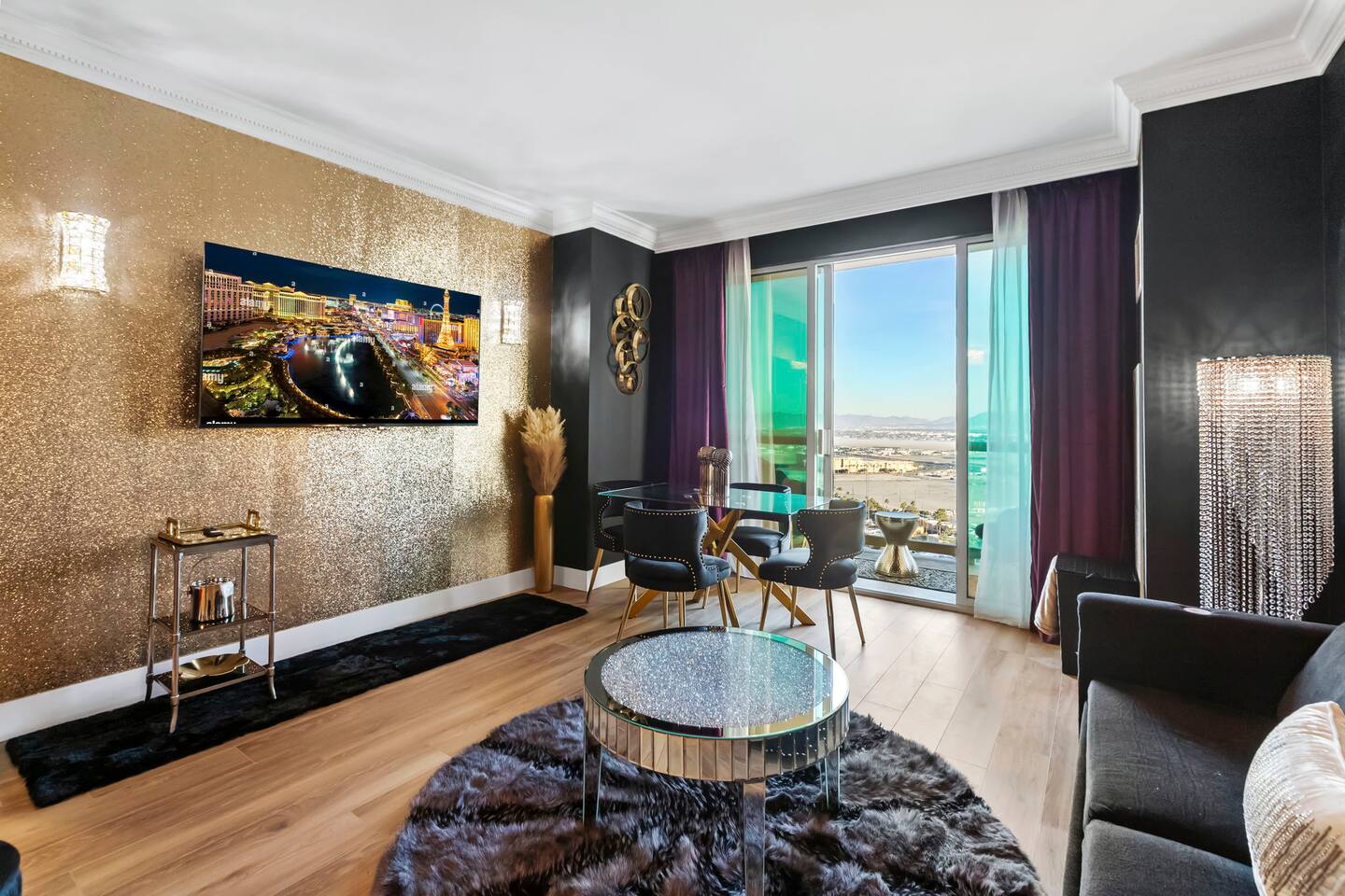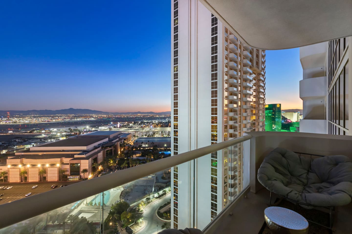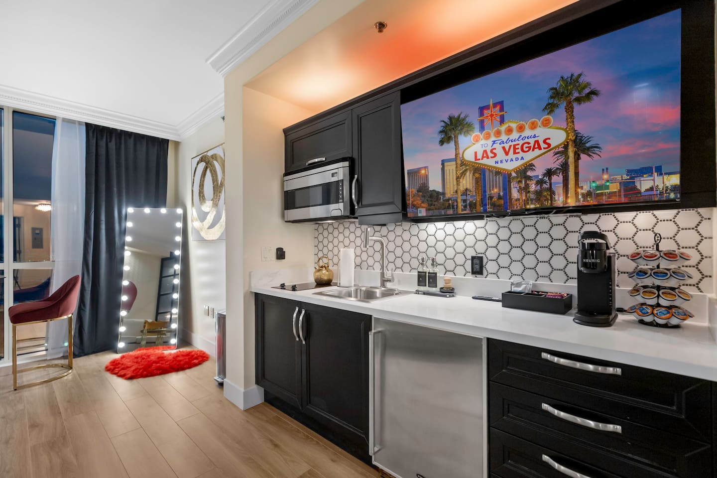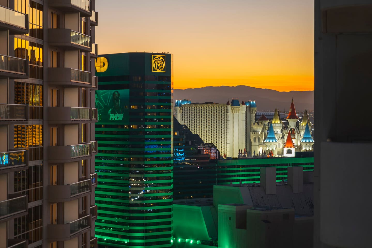 REMODELED * Free Access to ALL MGM Amenities ( Lazy River/Gym/4 Pools ) * Strip View Balcony * Jacuzzi Tubs * LED Lighting * 2 King Beds Total – 1 in Each Suite * 2 Pull-Out Queen Beds Total – 1 in Each Suite * 1 Fully Equipped Kitchen + Living Room * 1 Fully Equipped Kitchenette + Living Room * 3 Full Bathrooms * Free Valet Parking for 2 Vehicles NO RESORTS FEE