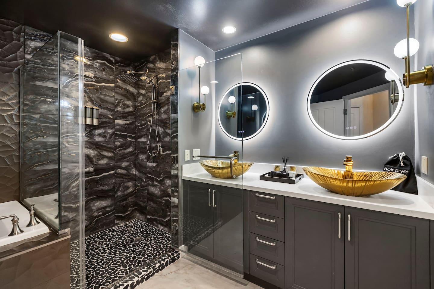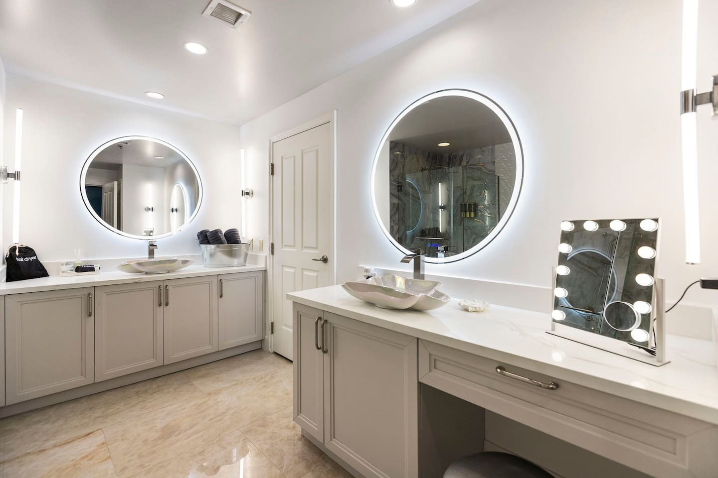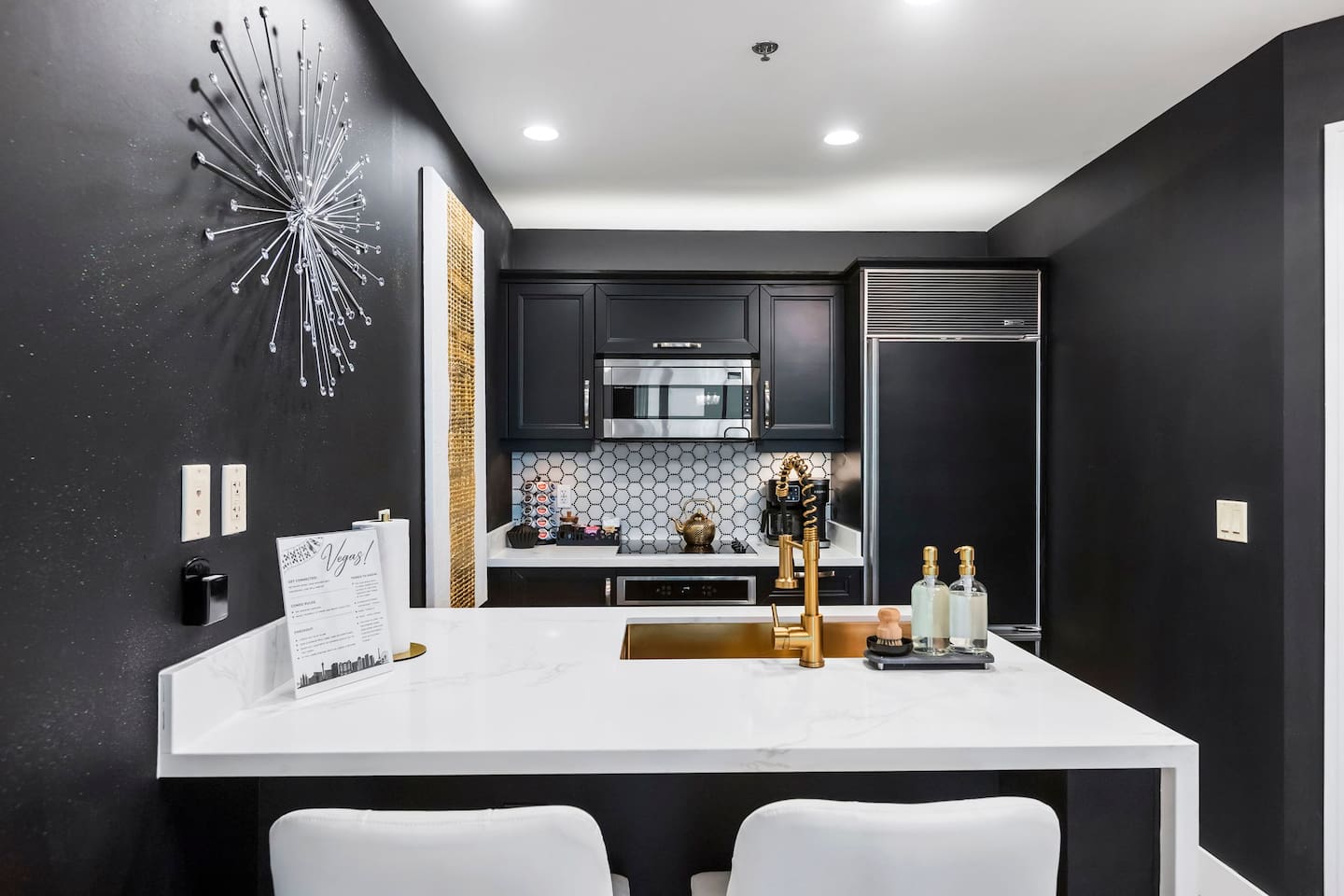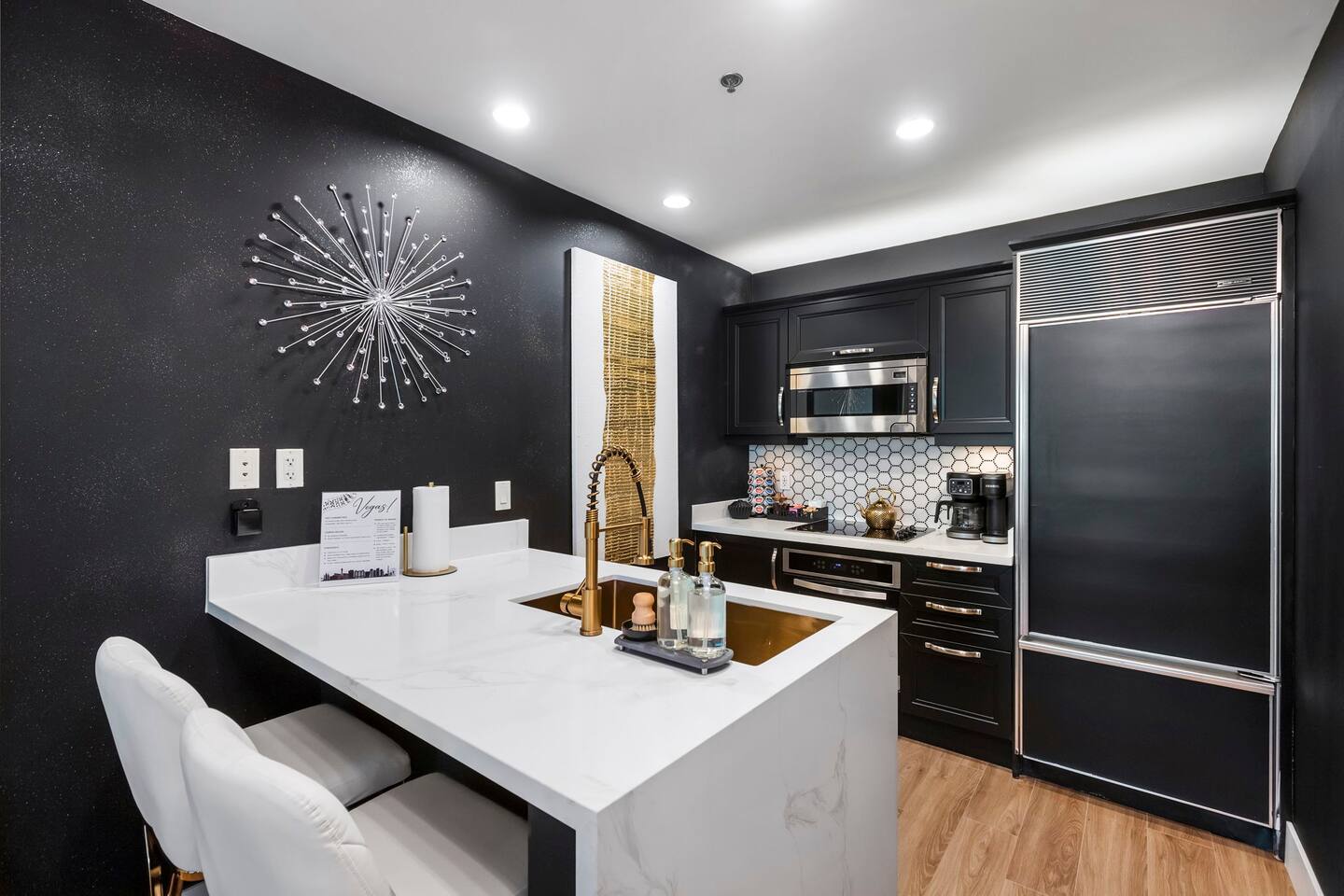 REMODELED * Free Access to ALL MGM Amenities ( Lazy River/Gym/4 Pools ) * Strip View Balcony * Jacuzzi Tubs * LED Lighting * 2 King Beds Total – 1 in Each Suite * 2 Pull-Out Queen Beds Total – 1 in Each Suite * 1 Fully Equipped Kitchen + Living Room * 1 Fully Equipped Kitchenette + Living Room * 3 Full Bathrooms * Free Valet Parking for 2 Vehicles NO RESORTS FEE