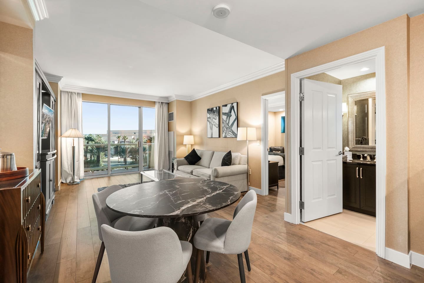 * Free Access to ALL MGM Amenities ( Lazy River/Gym/4 Pools ) * Top Golf View Balcony * Jacuzzi Tub * 1 King Bed Total * 1 Pull-Out Queen Bed Total * 1 Fully Equipped Kitchen + Living Room * 2 Full Bathrooms * Free Valet Parking for 1 Vehicle NO RESORTS FEE