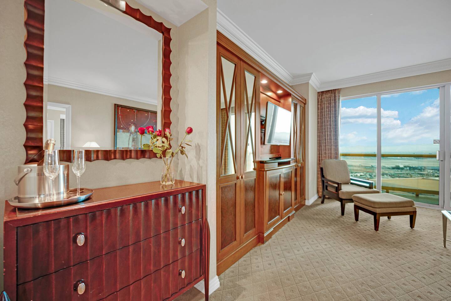 ON THE STRIP * Free Access to ALL MGM Amenities ( Lazy River/Gym/4 Pools ) * Balcony * Jacuzzi Tubs * 2 King Beds Total – 1 in Each Suite * 2 Pull-Out Queen Beds Total – 1 in Each Suite * 1 Fully Equipped Kitchen + Living Room * 1 Fully Equipped Kitchenette + Living Room * 3 Full Bathrooms * Free Valet Parking for 2 Vehicles NO RESORTS FEE